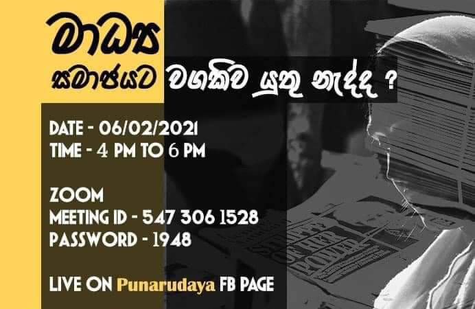 මේ පිළිබඳ අද (06) වැනි දා සවස 4.00 – 6.00 දක්වා නූතනවාදී සමාජ කතිකාවක් Zoom තාක්ෂණ්ය ඔස්සේ සංවිධානය කර තිබෙනවා. මෙය සංවිධානය කරන්නේ පුනරුදය සංවිධානය විසින් ඔබ සැමට ආරාධනා කරනවා මේ සංවාදයට එක්වී ඔබේ වටිනා අදහස් ද දක්වන ලෙස