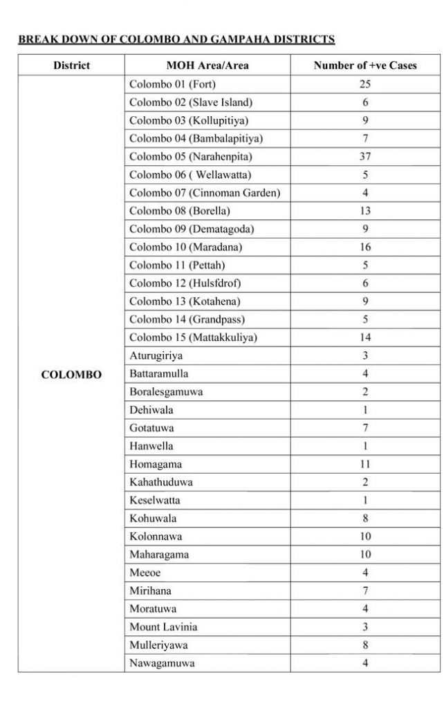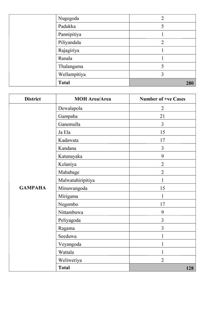 ඊයේ දින අලුතින් ආසාදිතයින් හඳුනාගත් ප්රදේශ පහතින්,