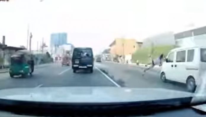 පෑලියගොඩ ප්රදේශයේ දී අද (05) උදෑසන පාර හරහා ගමන් කළ තරුණයකු කාර්ය බහුල වේලාවේ දී යොදන අමතර මංතීරුවේ දී මෝටර් රථයක ගැටෙන ආකාරය කැමරාවක සටහන්ව තිබිණි.