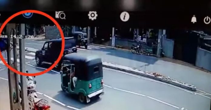 පුද්ගලයා ජීප් රියේ ගැටෙන ආකාරය දැක්වෙන සීසීටීවී දර්ශන සමාජ මාධ්යවලට එක්කර තිබේ.