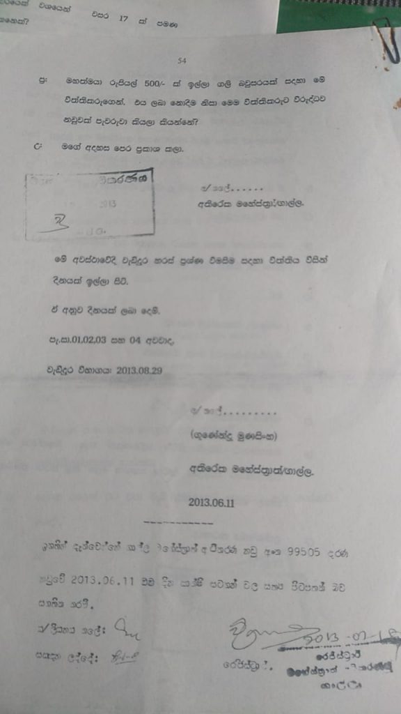 (මේ අවස්ථාවේ වැඩිදුර හරස් ප්රශ්න විමසීම සඳහා විත්තිය විසින් දිනයක් ඉල්ලා සිටී)