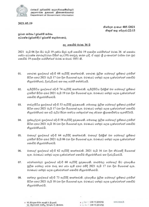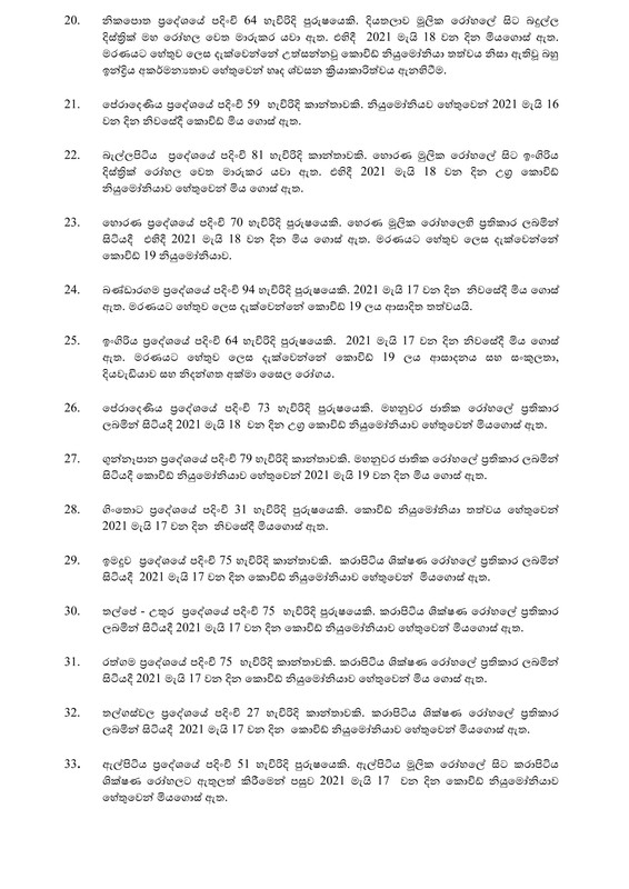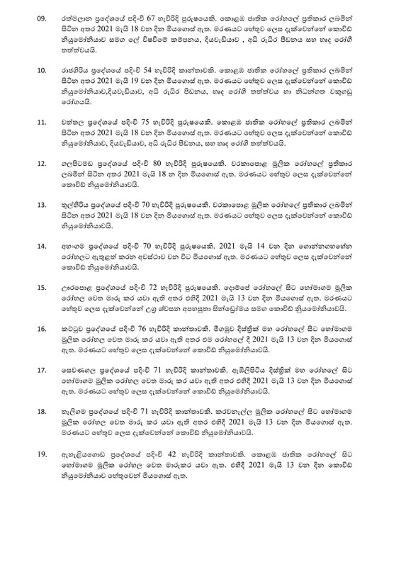 ඊයේ තහවුරු කරන ලද මරණ සම්බන්ධ ලේඛනය