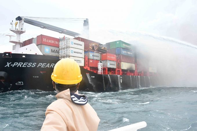 දැනට දින කිහිපයක සිට ගිනි ගනිමින් පවතින මේ නැවේ රසායනික ද්රව්ය අඩංගුව ඇති අතර නැවේ තිබූ බහාලුම් 08ක් මුහුදට වැටී ඇතැයිි ද සමුද්රී පරිසර ආරක්ෂණ අධිකාරිය පවසයි. නැවේ සිටි කාර්ය මණ්ඩල සාමාජිකයන් 25 දෙනකු ශ්රී ලංකා නාවික හමුදාව විසින් බේරාගෙන තිබිණි.