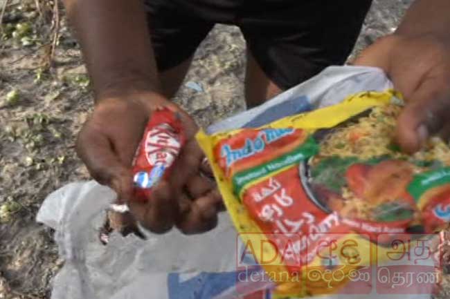 දෙරණ වාර්තාකරු පවසා ඇත්තේ වෙරළට, දැවි තෙල්, අබිලි ද්රව්ය, ප්ලාස්ටික් සහ චොකලට් වැනි ආහාර ද්රව්ය ද පාවී එන බවයි.