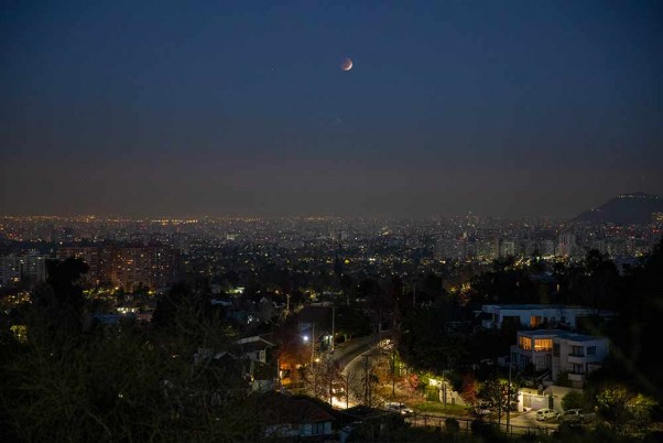චිලියේ සන්තියාගෝ ප්රදේශය පුරා චන්ද්රග්රහණයක් සිදු වේ. (AP ඡායාරූපය එස්ටෙබන් ෆීලික්ස්)