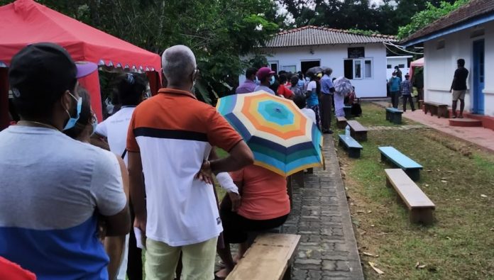 “අපි පැය 05කට වැඩිය පෝළිමේ හිටියා. පෝළිමට පිටින් කට්ටිය අරගෙන එන්නත් කළා. තවත් 500ක පමණ පිරිසක් පෝළිමේ සිටිය දී එන්නත් අවසන් කියලා කිව්වා. මේ කොට්ඨාසයේ එන්නත් කළ අය සම්බන්ධ ගණන කිරීමක් කළොත් සොයා ගත හැකි පිටතින් පැමිණි අය එන්නත් හොර පාරේ ලබාගෙන ද කියලා.”