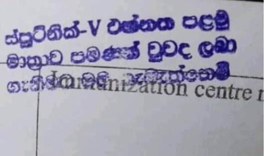මෙම පත්රිකාවේ ඉහළින් ම “එස්පුට්නික් V එන්නතේ පළමු මාත්රාව පමණක් වුව ද ලබාගැනීමට මම කැමැත්තෙමි” යනුවෙන් සඳහන්ව ඇත.