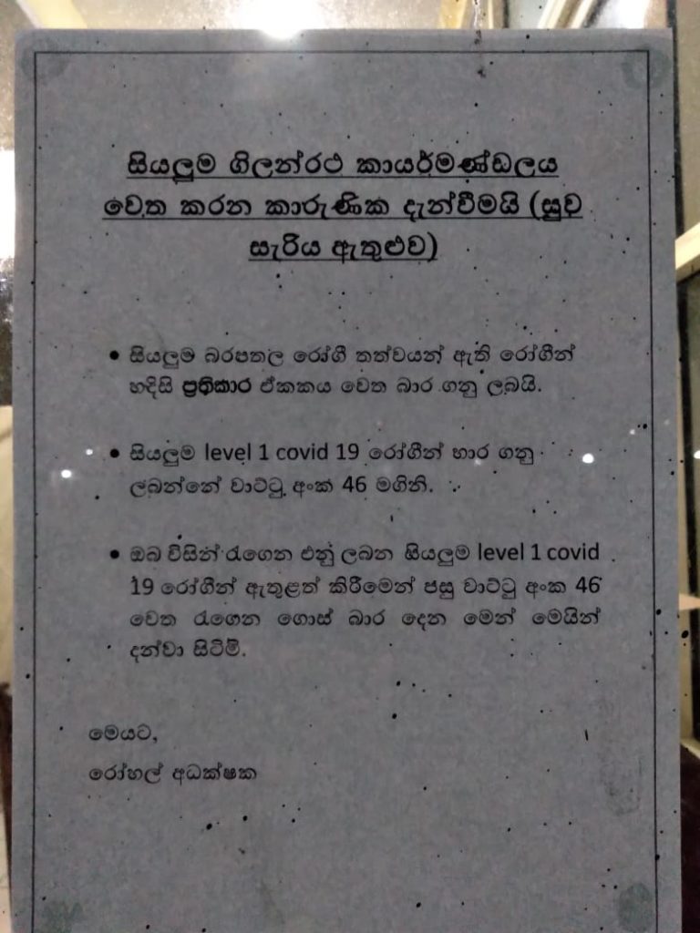 රෝගියකු රෝහලට රැගෙන ඒමෙන් පසු සුවසැරිය ගිලන් රථ සම්පූර්ණයෙන් ම විෂබීජහරණය කරන බැවින් ඒ සඳහා ද පැයක පමණ කාලයක් ගතවෙයි. මේ අනුව කරාපිටියේ නව නීතිය අනුව රෝගියකු රැගෙන එන සුවසැරිය ගිලන්රථයකට රෝහලට පැමිණි පසු යළි පිටත්වීමට පැය 02කට ආසන්න කාලයක් ගතවේ.