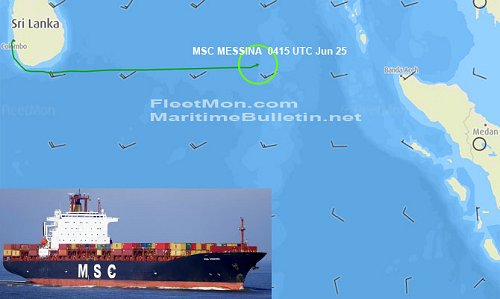 කොළඹ සිට සිංගප්පූරුව දක්වා යාත්රා කරමින් තිබූ MSC Messina නමැති කන්ටේනර් සහිත නැවක ගින්නක් හටගෙන ඇතැයි විදෙස් මාධ්ය වාර්තා කරයි.