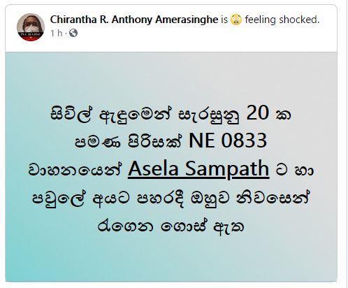 අපරාධ පරීක්ෂණ දෙපාර්තමේන්තුවේ බව කියමින් පැමිණි සිවිල් ඇඳුමින් සැරසුණු පුද්ගලයන් 20 දෙනකු පමණ පැමිණ මහජන අයිතීන් සුරැකීමේ පදනමේ සභාපති අසේල සම්පත් පැහැරගෙන ගිය බව ඔහුගේ දියණිය චෝදනා කරයි.