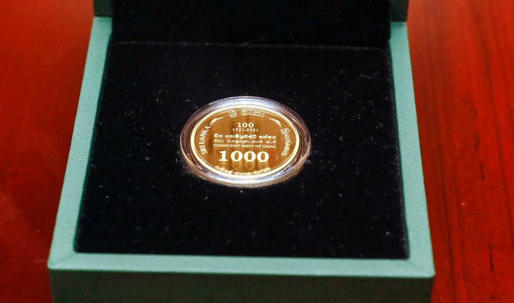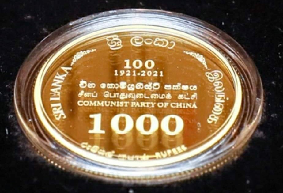 චීන කොමියුනිස්ට් පක්ෂයේ 100 වැනි සංවත්සරය සැමරීම නිමිත්තෙන් ශ්රී ලංකා මහ බැංකුව විසින් නිකුත්කරන ලද රුපියල් 1000.00 සමරු කාසිය ශ්රී ලංකා මහ බැංකු අධිපති මහාචාර්ය ඩබ්ලිව්.ඩී.ලක්ෂ්මන් මහතා අද (06) ජනාධිපති ගෝඨාභය රජපක්ෂ වෙත පිළිගැන්වූවේය.