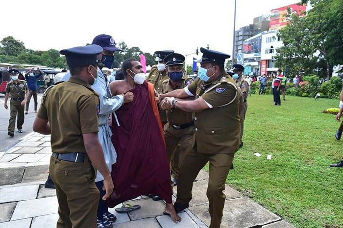 අන්තර් විශ්වවිදයාල ශිෂ්ය බල මණ්ඩලය විසින් අද (08) පැවැත්වූ උද්ඝෝෂණයක දී බෞද්ධ හිමිවරු දෙනකම් සහ ලංකා ගුරු සංගමයේ ප්රධාන ලේකම් ජෝසප් ස්ටාලිං ඇතුළු 31 දෙනකු අත්අඩංගුවට ගෙන ඇතැයි පොලිස් මාධ්ය ප්රකාශක ජ්යෙෂ්ඨ නියෝජ්ය පොලිස්පති නීතිඥ අජිත් රෝහණ පවසයි.