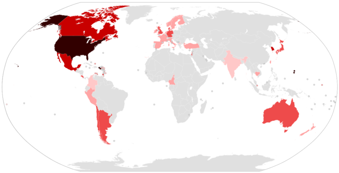 පළමු වරට ඇමෙරිකා එක්සත් ජනපදයෙන් වාර්තා වූ මෙම ප්රභේදය දැනටමත් රටවල් 34කින් වාර්තා වී ඇති අතර පාකිස්තානය දක්වා ම පැමිණ තිබේ.