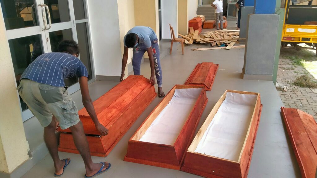 අත්තනගල්ල ප්රාදේශීය සභාව මිනී පෙට්ටි ද නිෂ්පාදනය කර කෝවිඩ් 19 වෛරසය ආසාදනය වී මිය යන අයගේ ආදාහන කටයුතු නොමිලේම සිදු කිරීම ආරම්භ කොට ඇත.