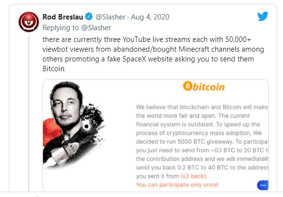 ඔවුන් සිදුකරන්නේ මෙවැනි නාලිකා අත්පත් කරගනිමින් බිට්කොයින් වංචාවන් ප්රවර්ධනය කිරීමයි. මීට පෙර එවැනි නාලිකා හැක්කර ඒවායේ නම් “SpaceX” සහ “Elon Musk” වැනි නම්වලට එම නාලිකාව වෙනස් කර තිබිණි.