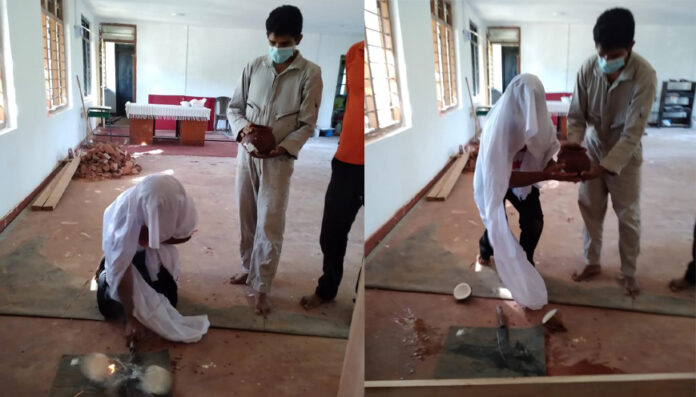 මෙරට ඇති සංස්කෘතිය අනුව වැඩිවියට පැමිණි ගැහැනු ළමයකු නහවා ගෙට ගන්නා අයුරින් සුදු රෙද්දක් පොරවා ගත් අයකු විසින් විදුහල්පතිවරයා වෙනුවෙන් ශාන්තිකර්මයක් සිදුකර පොල් ගෙඩියක් ද බිඳ දමා තිබේ. මෙය සංවිධානය කළ පිරිස පවසන්නේ විදුහල්පතිවරයාට භූත දෝෂවලින් තොරව රාජකාරී කිරීමට අවශ්ය වටපිටාව සැකසීම සඳහා මෙලෙස භූතයන් එළවීමේ ශාන්තිකර්මයක් සිදුකළ බවයි.