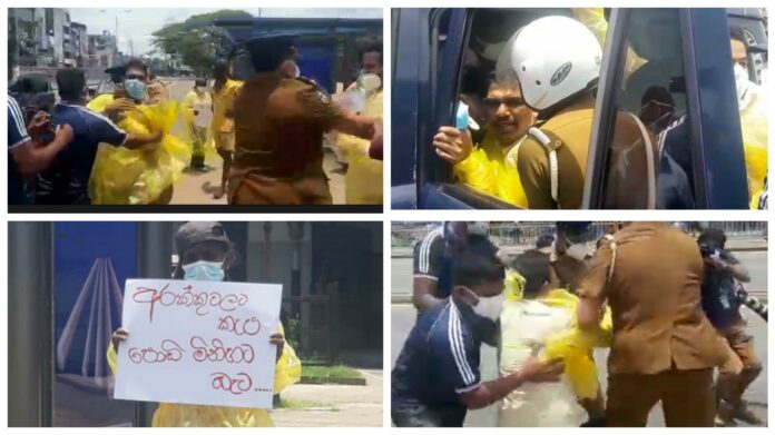 පොලිසිය විරෝධතා කරුවන් ඔසවාගෙන ගොස් පොලිස් ජීප් රථයක දමා ගන්නා අයුරුද දක්නට ලැබිණි.