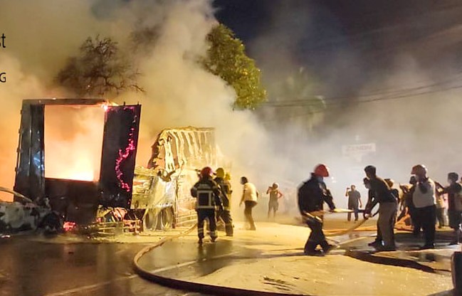 කාරය සහ ලොරිය ගින්නෙන් විනාශ වී ඇත.