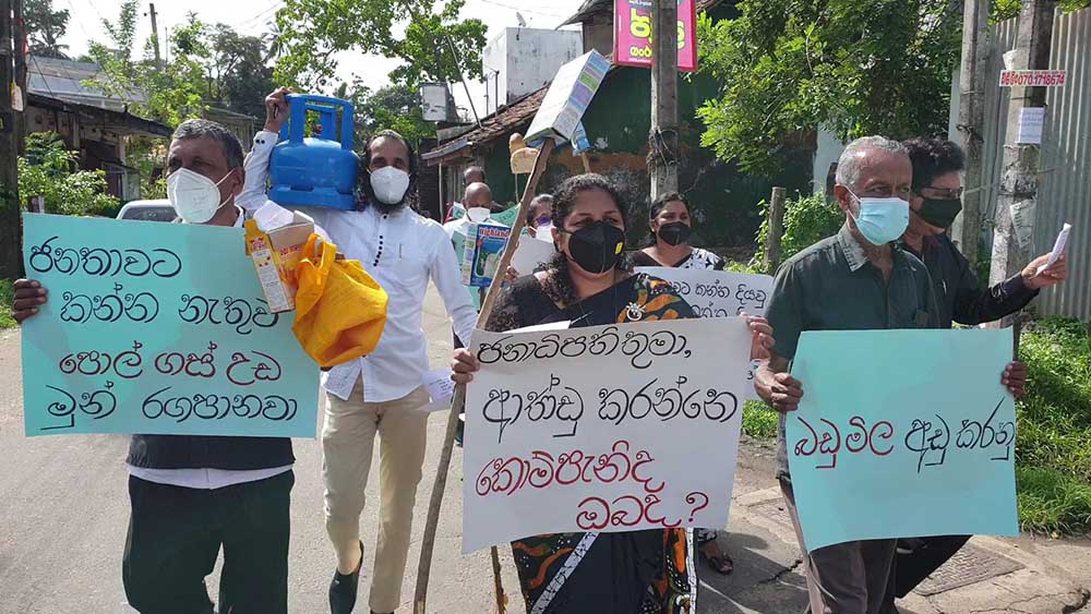 ගෑස්, පාන්, කිරිපිටි ඇතුළු අත්යාවශ්ය භාණ්ඩවල මිල ඉහළ යාම සහ පාලන මිල ඉවත්කිරීම හේතුවෙන් සමාගම්වලට මිල ඉහළ දැමීමට ඉඩ දීම යන කරුණුවලට එරෙහිව මෙම විරෝධතාව සංවිධානය කර තිබිණි.
