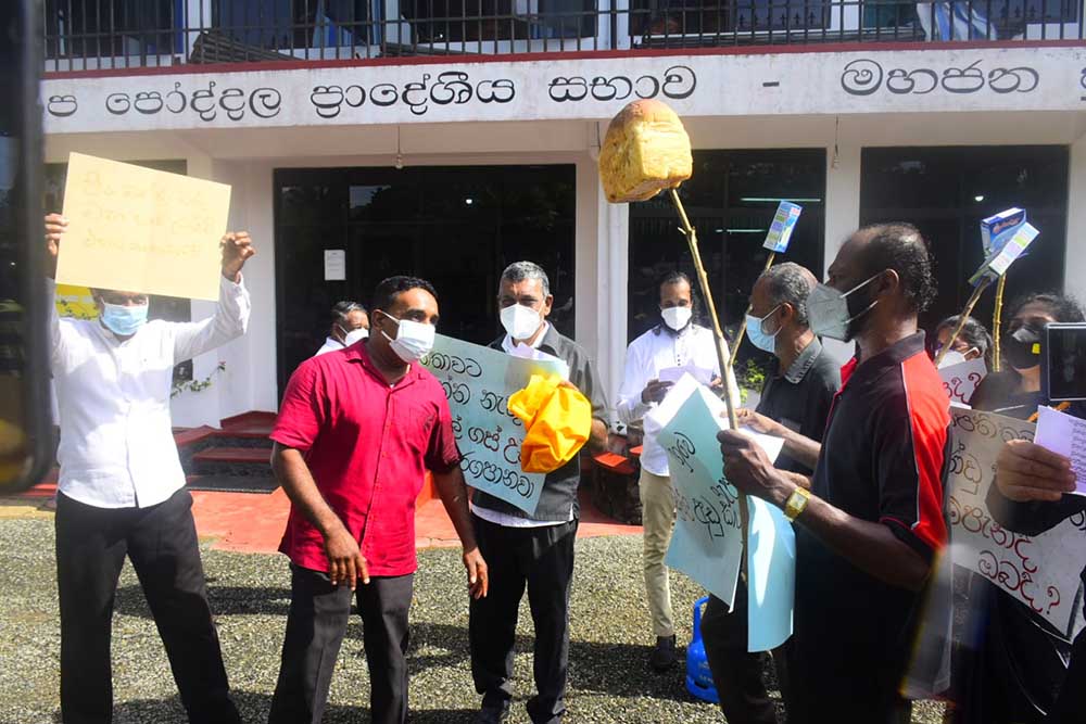 බෝපේ පෝද්දල ප්රාදේශීය සභාවේ විපක්ෂ මන්ත්රීවරු ඊයේ (15) එහි මාසික සභා රැස්වීම ආරම්භ කිරීමට පෙර බඩු මිල ඉහළ යාමට එරෙහිව උද්ඝෝෂණයක නිරතවූහ.