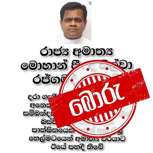 රජ්ගම දී තමන්ට කිසියම් පුද්ගලයකු විසින් පහරදුන් බවට සමාජ මාධ්ය ඔස්සේ ගෙන යන ප්රචාර අසත්ය බවත් එම ප්රචාර සිදුකරමින් තම කීර්ති නාමයට හානි සිදුකරන පුද්ගලයන් පිළිබඳ පරීක්ෂණයක් පවත්වන ලෙසත් පොලිසියට දැනුම් දුන් බව රාජ්ය අමාත්ය නීතිඥ මොහාන් පී. ද සිල්වා පවසයි.