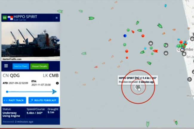 ශ්රී ලංකාවේ කෘෂිකර්ම අංශ විසින් ප්රතික්ෂේප කරන ලද පොහොර තොගය සහිත Hippo Spirit නමැති චීන නෞකාව මේ වනවිට කළුත බේරුවල මුහුද ආසන්නයේ නැංගුරම් දා තිබේ. ඒ බව Marine Traffic වෙබ් අඩවියෙන් තහවුරු වෙයි.