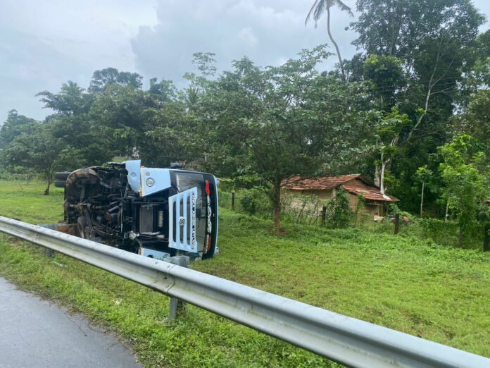 දක්ෂිණ අධිවේගී මාර්ගයේ ගාල්ල සහ මාතර අතර කිලෝ මීටර 112 කොක්මාදුර හුවමාරුව ආසන්නයේ දී බස් රථයක් මාර්ගයෙන් ඉවතට පැන පෙරැළී ඇතැයි පොලිසිය පවසයි.