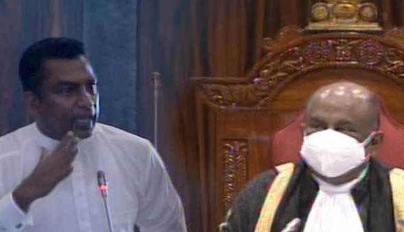 “මේ සභාගර්භයේ ඉන්නවා මන්ත්රීවරු 225ක්. ඒ 225ට අදාළ කරුණු කාරණා මිසක් මින් පරිභාහිරව ඉන්න කාන්තා සහ පුරුෂයින්ගේ නම් මේ සභාවට ගේන්න එපා කියලා මම ගෞරවයෙන් ඉල්ලනවා. සභාවේ උත්තරීත්වය රැකෙන්නේ 225 දෙනාගේ හැසිරීම අනුව. දරුවෝ බලාගෙන ඉන්නවා. කාන්තා මන්ත්රීවරු ඉන්නේ 12යි. පක්ෂ හෝ විපක්ෂ මන්ත්රීවරියන්ට අසභ්ය හෝ වක්ර ප්රකාශ ඇත්නම් ඒවා හෙළා දකිනවා ඒවට විරුද්ධව කටයුතු කරන්න.”