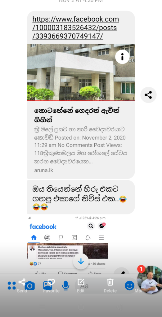 “ඇත්තටම ඒ වෙන විට සති ගණනාවකින් අපේ ලොරි එකක්වත් පෑළියගොඩ ගිහින් තිබුණේ නැහැ. නමුත්, ෆේස්බුක් එකේ නිර්ණාමික අයෙක් දාපු පෝස්ට් එකක් නිසා පොලිසිය අපේ ගෙදර අයව බලෙන්ම නිරෝධානයට දැම්මා. අඩුම තරමින් පී.එච්.අයි. මහත්තුරුවත් අපේ ගෙදරට ආවේ නැතිව තමා පොලිසිය අපේ ගෙදර දැන්වීම් අලෙව්වේ. ඒ වෙන කොට මගේ දුව උසස් පෙළ විභාගයට පෙනී සිටිමින් හිටියේ. එයාව වෙනම කාමරේකට දාලා තමා ඊට පස්සේ එයාට විභාගය ලියන්න වුණේ. ඒ නිසා එයා ගොඩක් මානසිකව වැටුණා. සමහර ළමයි එයා එද්දී මග ඇරලා යනවලු. ඒ දවස් ටිකේ අපේ එක වාහනයකටවත් දුවන්න ලැබුණේ නැහැ. ඒ නිසා අපිට ආර්ථිකවත් ඒක බලපෑවා. පස්සේ මම පීඑච්අයි එකට කථා කරලා මේ අසාධාරණය කිව්වහම ඒක පිළි අරන් දින 5 න් අපේ නිරෝධානය නැවැත්තුවා. නැත්නම්,අපිට දවස් 14 නිරෝධානය වෙන්න තමා වෙන්නේ. ඇත්තටම මේ මාධ්ය මගින් ෆේස්බුක් මගින් සිද්ධ වෙන හානි ගැන පැමිණිලි කරන ආකාරය මීට වඩා ක්රමවත් හා පහසු විය යුතුයි. එහෙම දේවල් ගැන ජනතාව දැනුම්වත් නැහැ..“