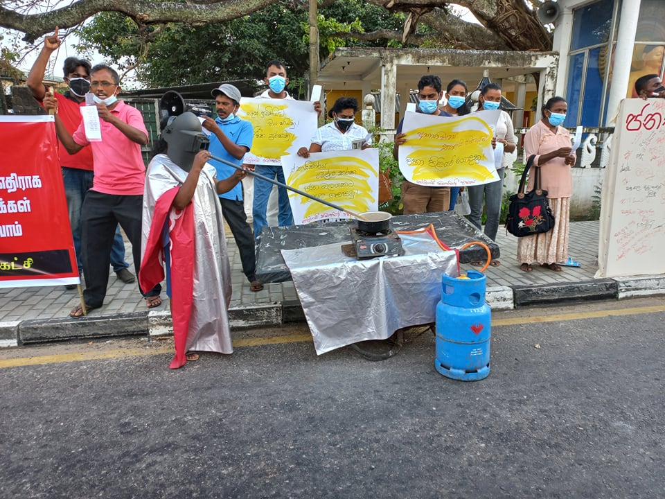 මෙම උද්ඝෝෂණය පැවැති අවස්ථාවේ දී ආරක්ෂිත ඇඳුම් කට්ටලයකින් සැරසුණු ගෘහණයක් ගෑස් සිලින්ඩරයක් භාවිතයෙන් ආහාර පිසින ආකාරයක් ද නිරූපණය කර තිබිණි.