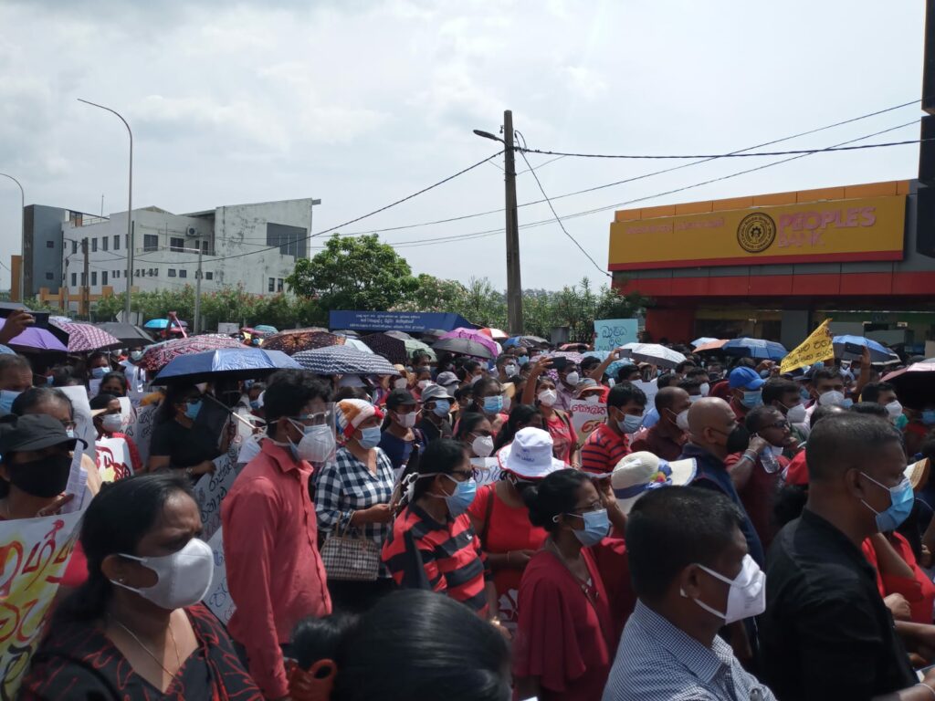 ගාල්ල සමනල පාලම ක්රීඩාංගණය අසළින් සංවිධානය වූ පෙළපාළිය ගාල්ල නගරයේ ගමන් කර ප්රධාන බස්නැවතුම් පොළ ඉදිරිපිටට පැමිණ උද්ඝෝෂනයක නිරතවිය. මේ හේතුවෙන් ගාල්ල කොළඹ ප්රධාන මාර්ගයේ වාහන ධාවනයට ද බලපෑම් එල්ල වී තිබිණි.
