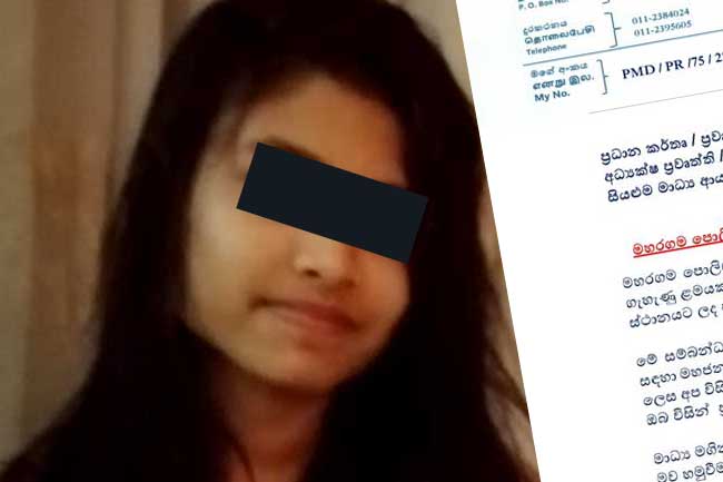 මහරගම ප්රදේශයේ පදිංචිව සිටිය දී 15 හැවිරිදි දැරියක් අතුරුදන්ව ඇතැයි රට පුරා මාධ්ය සහ සමාජ මාධ්ය මගින් විශාල ප්රචාරයක් ගෙන ගිය අතර එම දැරිය මේ වනවිට මව හමුවට පැමිණ තිබෙන බව පොලිසිය පවසයි.