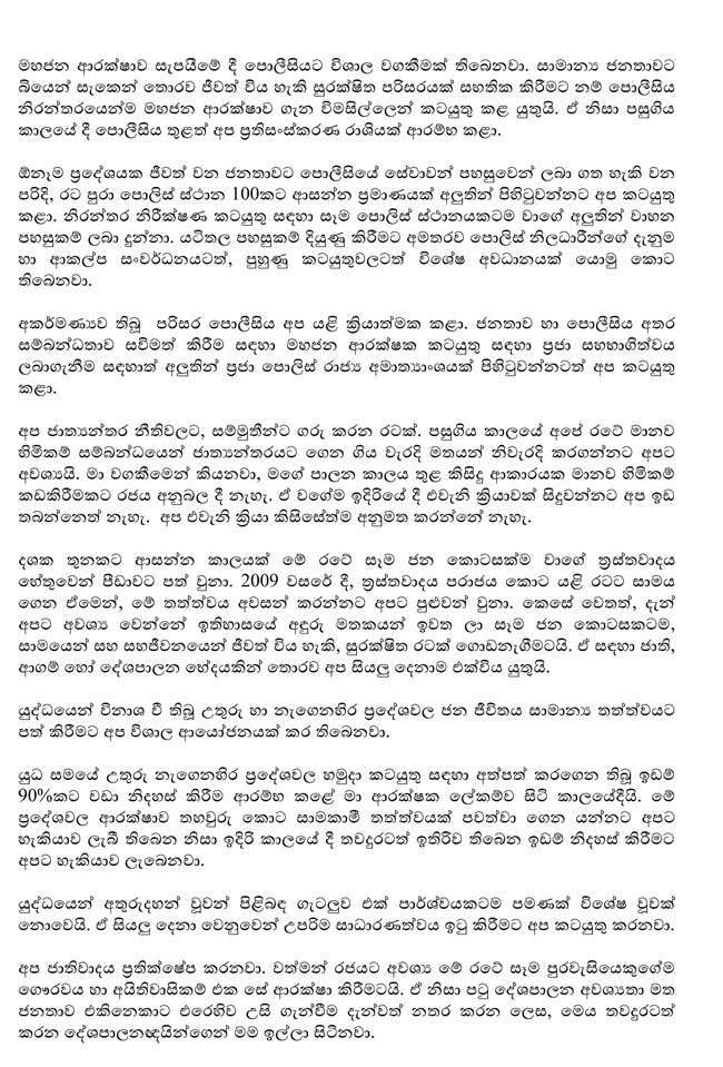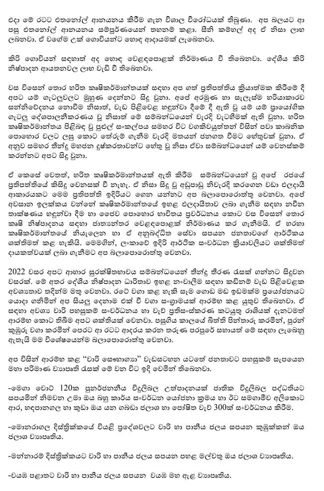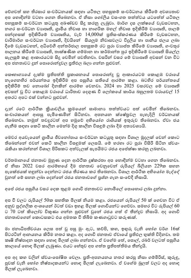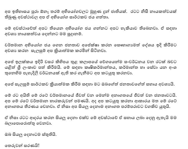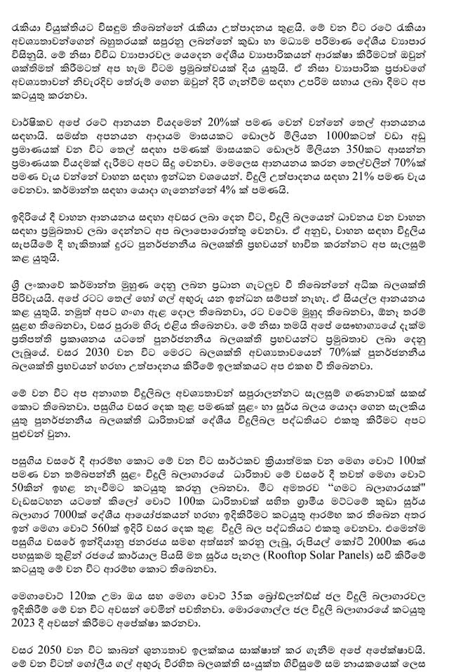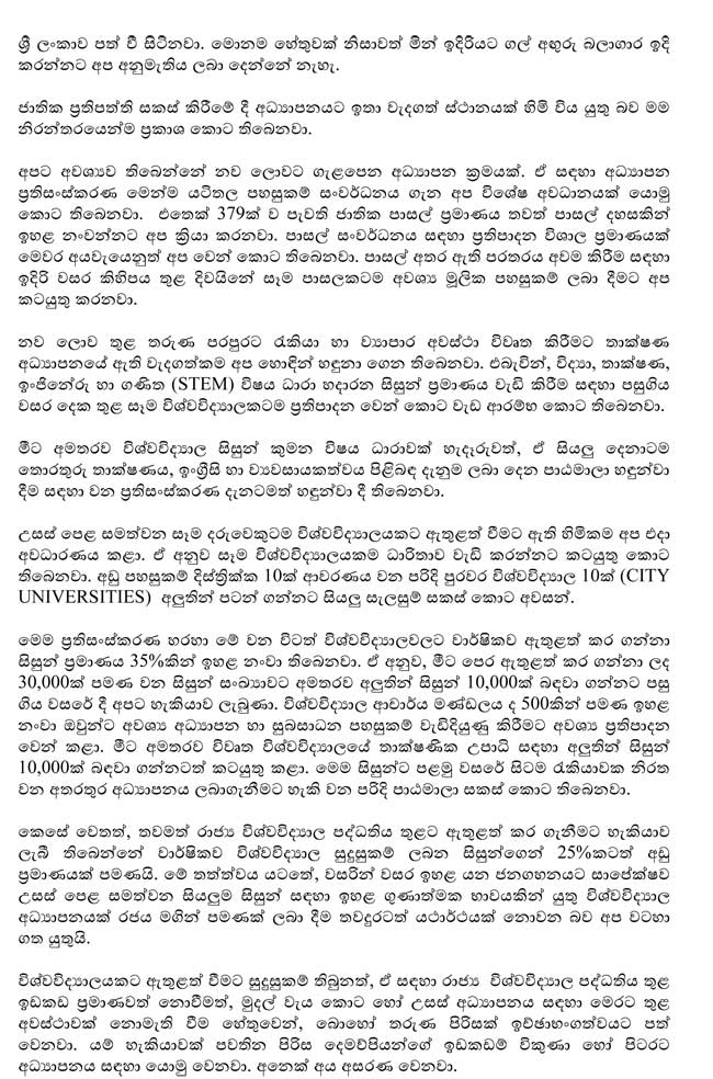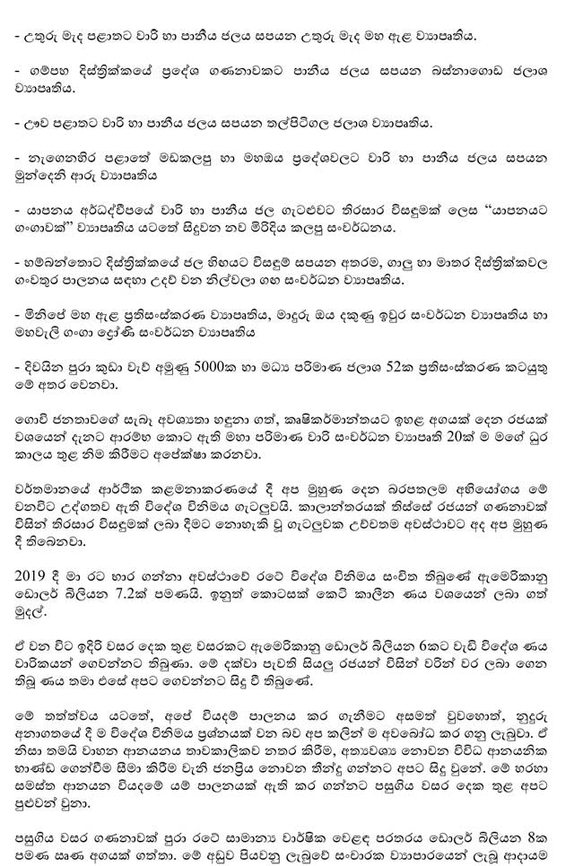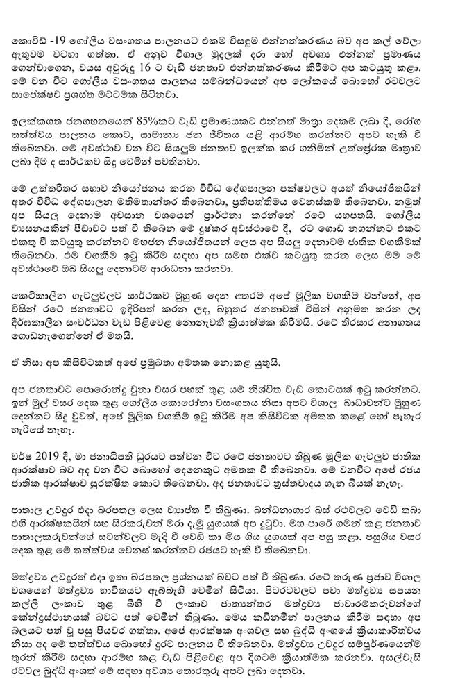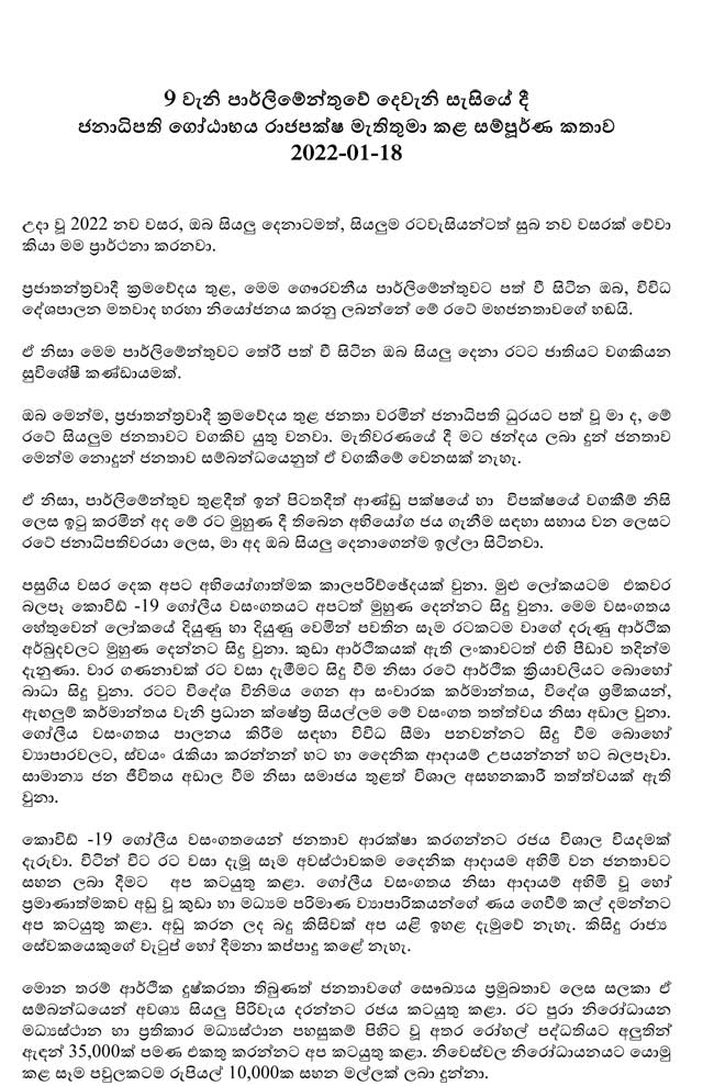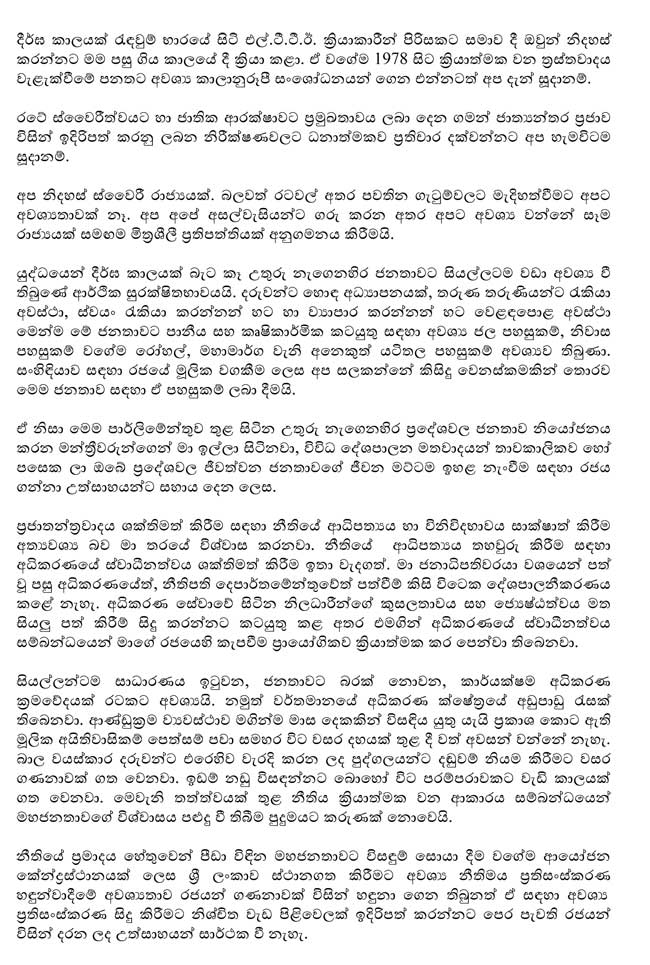 ජනාධිපතිවරයා විසින් සිදුකළ සම්පූර්ණ කතාව පහත සඳහන් කර ඇත.