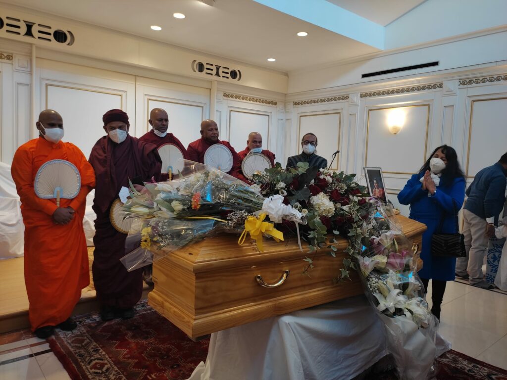 දේහයට බෞද්ධ ආගමික වතාවත් ද එරට දී සිදුකෙරුණු අතර ඇයගේ අවසන් ඉල්ලීමක් අනුව දේහය විවෘත නොකර දේහය බහාලූ පෙට්ටිය වසා තැබීම විශේෂත්වයකි.