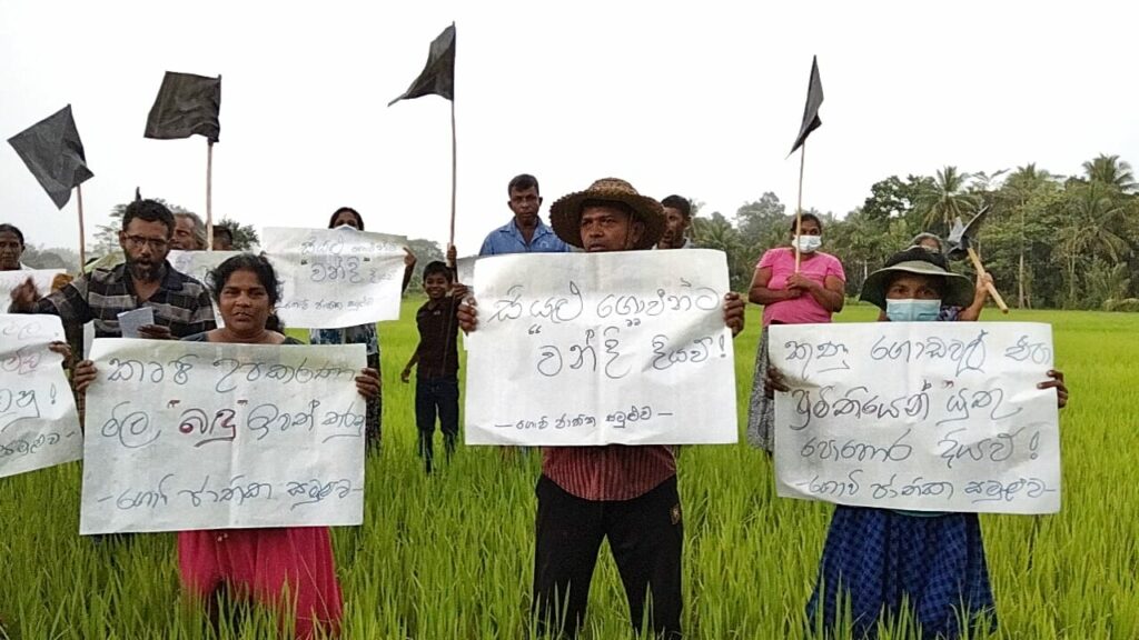 නිසි ලෙස පොහොර නොලැබීම හේතුවෙන් මෙවර වගාව අසාර්ථකවීම හේතුවෙන් ජීවත්වීමට හැකියාවක් නොමැති බව ඔවුහු පවසති. “හානි වූ වගාවට වන්දි දියව්” යන සටන් පාඨය ඉදිරිපත් කරමින් ඔවුහු කුඹුරුවලට බැස කළු කොඩි ඔසවා උද්ඝෝෂණය කළහ.