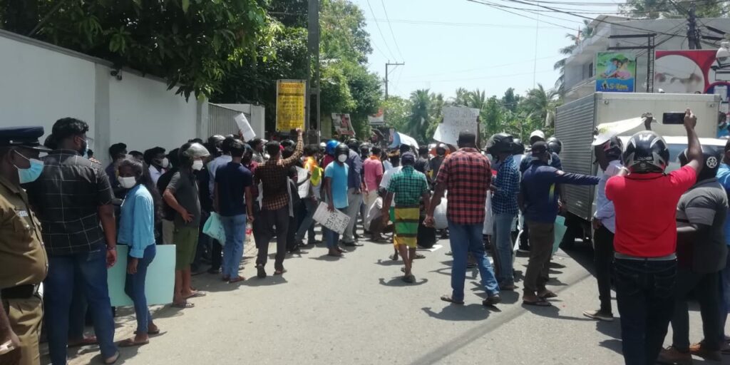 හිටපු අමාත්ය කැබිනට් ප්රකාශක රමේෂ් පතිරණගේ නිවස ඉදිරිපිට අද (04) දහවල් උද්ඝෝෂණයක් පැවැත්විණි. 300ක පමණ පිරිසක් පැමිණ එම නිවස ඉදිරිපිට රජයට එරෙහිව සටන් පාඨ කියමින් පැයකට වැඩි කාලයක් රැඳී සිටියහ.