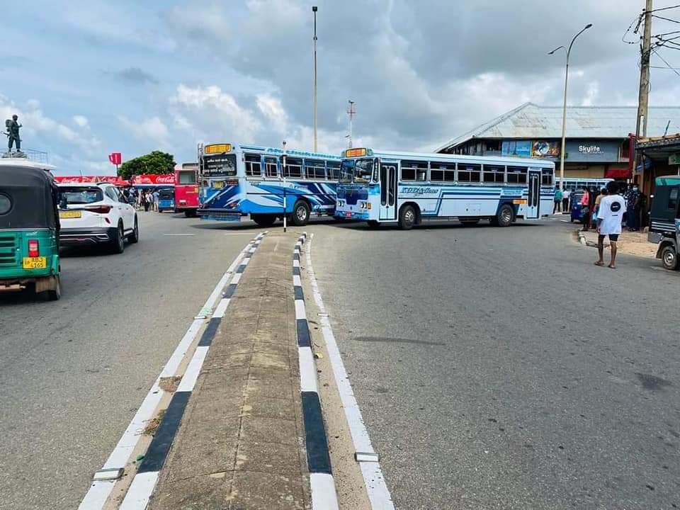 ප්රධාන බස් නැවතුම්පොළ වටා මාර්ග අවහිර වන ආකාරයෙන් බස් රථ නවතා දමා බස් සේවකයෝ රජයට විරෝධා දක්වති. මේ හේතුවෙන් මාතර නගරයේ දැඩි වාහන තදබදයක් හටගෙන තිබේ.