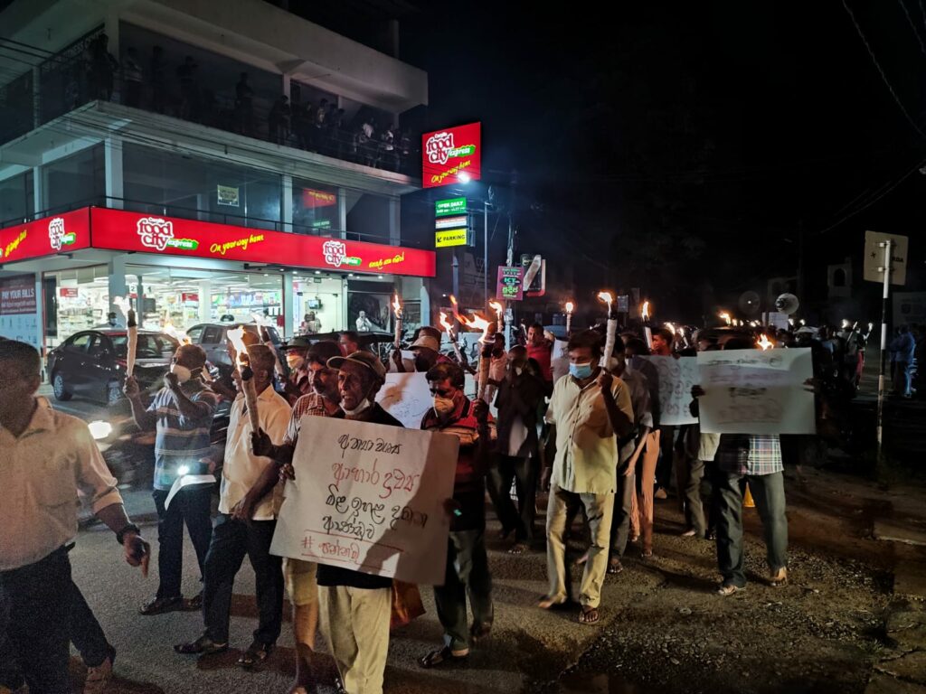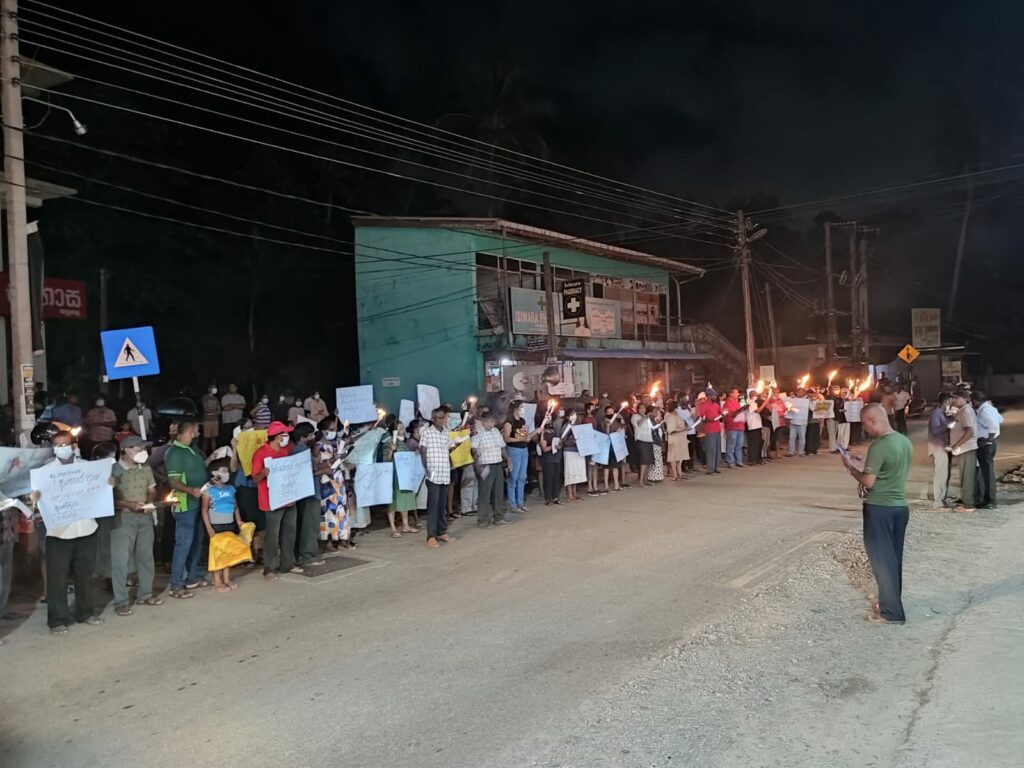 එම විරෝධතාකරුවන් පන්දම් දල්වාගෙන, රුහුණ විශ්වවිද්යාලයේ හපුගල ඉංජිනේරු පීඨය අසළ සිට පා ගමනින් පැමිණ මෙලෙස උද්ඝෝෂණයේ යෙදිණි