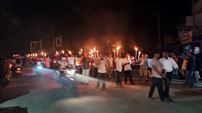 එම විරෝධතාකරුවන් පන්දම් දල්වාගෙන, රුහුණ විශ්වවිද්යාලයේ හපුගල ඉංජිනේරු පීඨය අසළ සිට පා ගමනින් පැමිණ මෙලෙස උද්ඝෝෂණයේ යෙදිණි