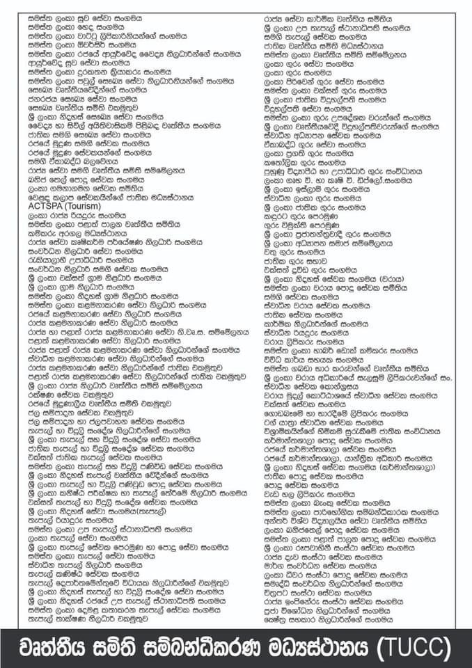 රටේ ක්රියාත්මක සියලු වෘත්තීය සමිති මෙම වැඩවර්ජනයට සිය සහයෝගය ලබාදුන්න ද වෛද්ය අනුරුද්ධ පාදෙණිය සභබාපතිත්වය දරන රජයේ වෛද්ය නිලධාරීන්ගේ සංගමය සහ මුරුත්තෙට්ටුවේ ආනන්ද හිමි සභාපතිත්වය දරන රාජ්ය සේවා එක්සත් හෙද සංගමය මෙම වැඩ වර්ජනය සඳහා සහාය දීමට මෙතෙක් ඉදිරිපත් වි නැත.