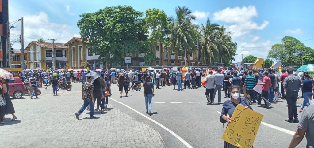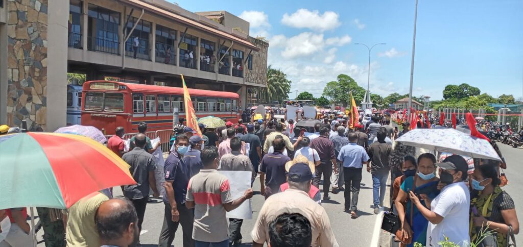 වැඩ වර්ජනයේ නිරත රාජ්ය, අර්ධ රාජ්ය සහ පුද්ගලික ආයතනවල සේවයේ නිරත වෘත්තිකයෝ රැසක් අද (28) දහවල් රජයට එරෙහි විරෝධතා සඳහා ගාල්ල නගරයට පැමිණිය.