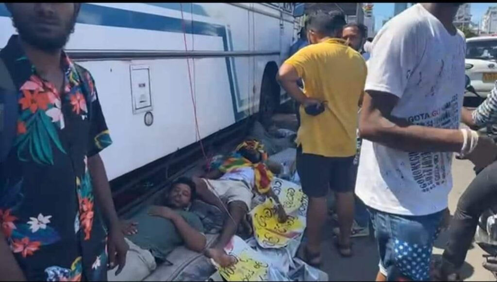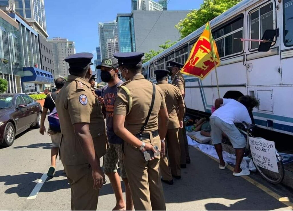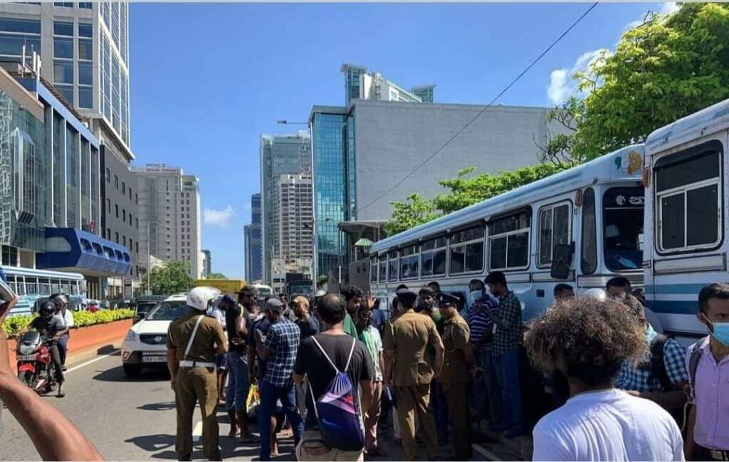 දින කිහිපයක් තිස්සේ පදික වේදිකා අවහිරවන පරිදි එම ස්ථානයේ නවතා තිබූ බස් රථ කිහිපයකට විරෝධතාකරුවන් විසින් සවිකර තිබූ පුවරු ඉත්කිරීමට පොලිසිය උත්සාහ කිරීමත් සමඟ මේ තත්වය ඇතිවී තිබේ.