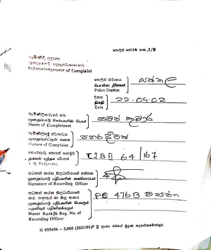 ඉන් පසු ඊයේ (02) ඔහු නිවසේ නොසිටි අවස්ථාවක නිවසට පැමිණි පොලිස් නිලධාරින් විසින් ඔවුන්ගේ යතුරුපැදිය නීති විරෝධී ලෙස පොලිසියට ගෙනගොස් තිබේ. එම යතුරුපැදිය ලබාගැනීමට අවශ්යනම් පොලිසියට එන ලෙස දැනුම් දී ඇත