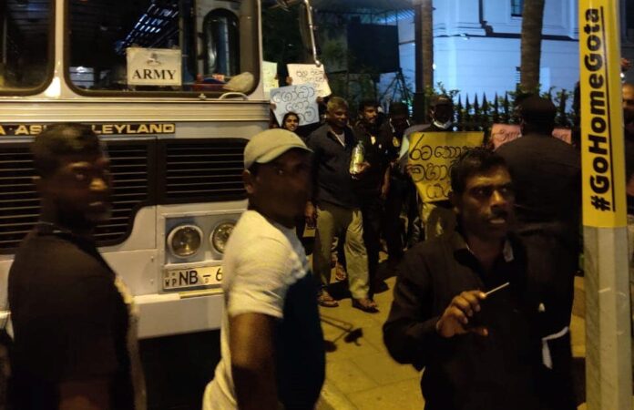 අද (05) රාත්රී පැමිණි මෙම පිරිසෙන් කිහිප දෙනකු ගෝඨාගෝ ගම දෙසට ගමන් කිරීමට සූදානම්වන බව ද දැනගන්නට ඇත.