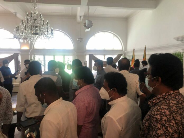 කොළඹ අරලියගහ මන්දිරයට අද (07) පැමිණි ශ්රී ලංකා පොදුජන පෙරමුණේ ප්රාදේශීය සභා නියෝජිත පිරිසක් අගැමති මහින්ද රාජපක්ෂ වටකරගෙන ඔහුට ඉල්ලා අස්නොවන ලෙස බලකිරීම් කළහ.