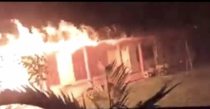 වීරකැටියේ මැදමුලන පිහිටි රාජපක්ෂ පවුලේ මහ ගෙදර අද (09) රාත්රී ගිනි තබා විනාශ කර තිබේ.