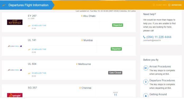 මේ යානා දෙක අතරින් UL 604 යානය සම්බන්ධයෙන් ගුවන්තොටුපොළ වෙබ් අඩවියේ තොරතුරු දැක්වෙතත් UL 606 යානය සම්බන්ධයෙන් කිසිදු තොරතුරක් නැත.