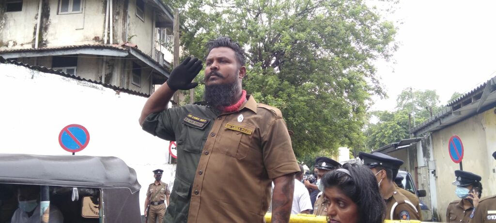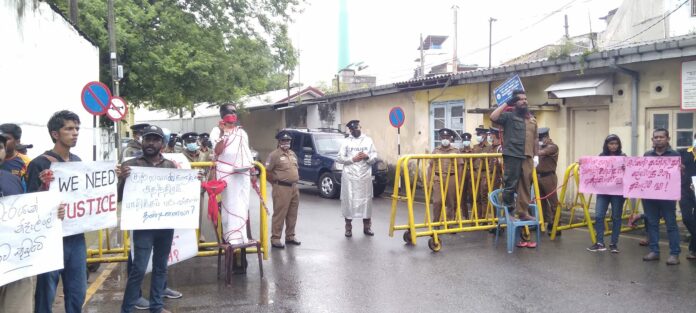 අද අධිකරණ කටයුතු ආරම්භවීමෙන් පසු එම ස්ථානයේ දී සාමකාමී උද්ඝෝෂකයන් පිරිසක් නිතියේ සාධාරණත්වය ඉල්ලා නිහඬ උද්ඝෝෂණයක නිරතවිය.