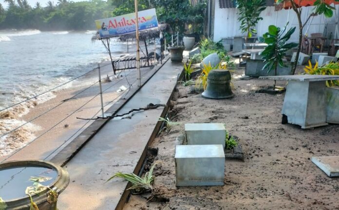 දැඩි සුළං තත්වය හේතුවෙන් ගාල්ල නගරය ඇතුළු නිරිත දිග වෙරළේ ස්ථාන රැසක ගොඩබිමට විශාල මුහුදු රැළ පැමිණ ඇත.