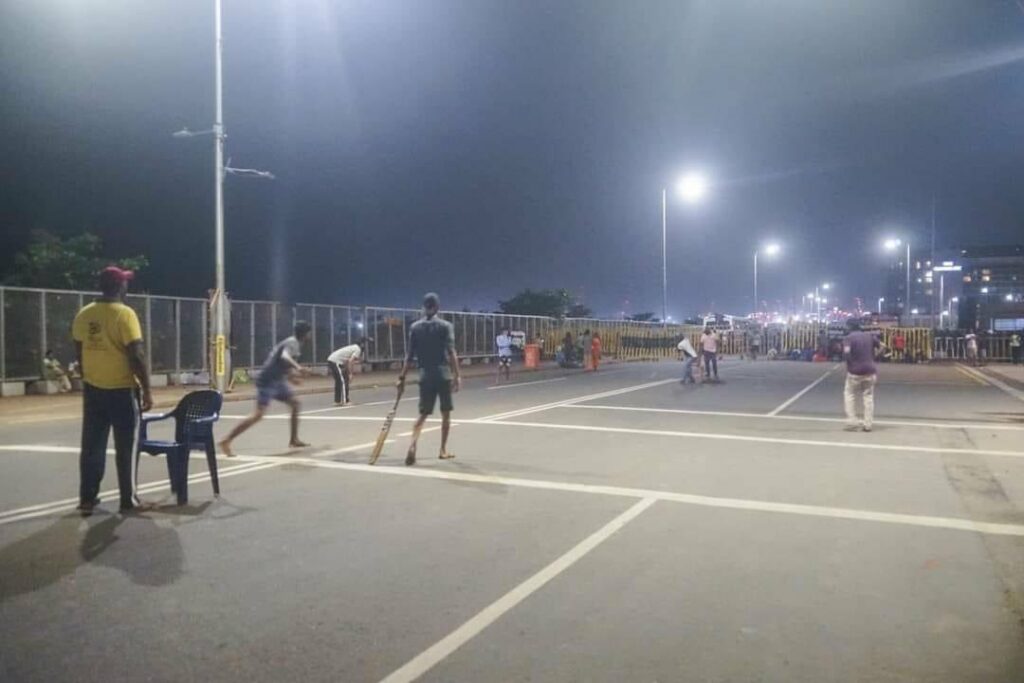 ජනාධිපති ලේකම් කාර්යාලයේ රැඳී සිටි අරගලකරුවන් පොලිසිය සහ ත්රිවිධ හමුදාව එක්ව කරන ලද මෙහෙයුමෙන් පසු රාත්රී කාලයේ ගාලු මුවදොර නව බාලදක්ෂක මාවතේ ගාලු පාරේ අරගලකරුවන් ක්ර්රිකට් ක්රීඩාවේ නිරතව සිටි ආකාරය මේ ඡායාරූපවල දැක්වෙයි.